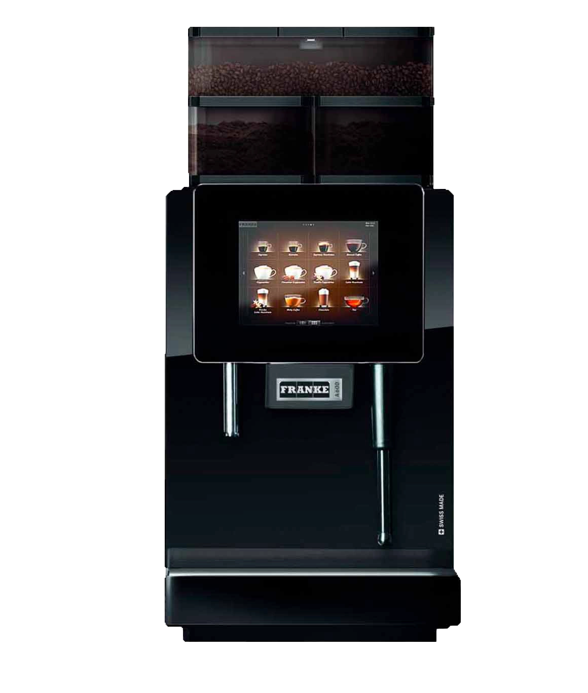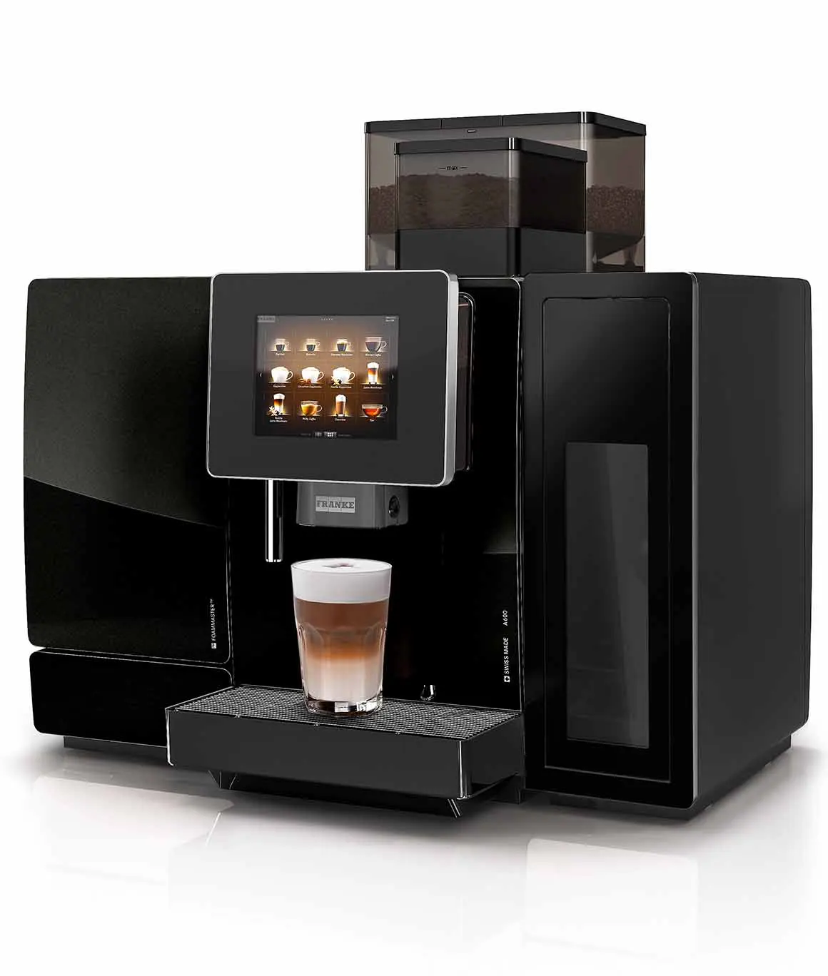 Den store berøringsskjermen gjør det enkelt å velge drikke, og maskinen kan konfigureres med flere bønnebeholdere og melkefunksjoner. Dette gjør A600 til et fleksibelt valg for bedrifter med mange ansatte. Franke A600 leveres med løsning for fersk melk og pulvermelk.