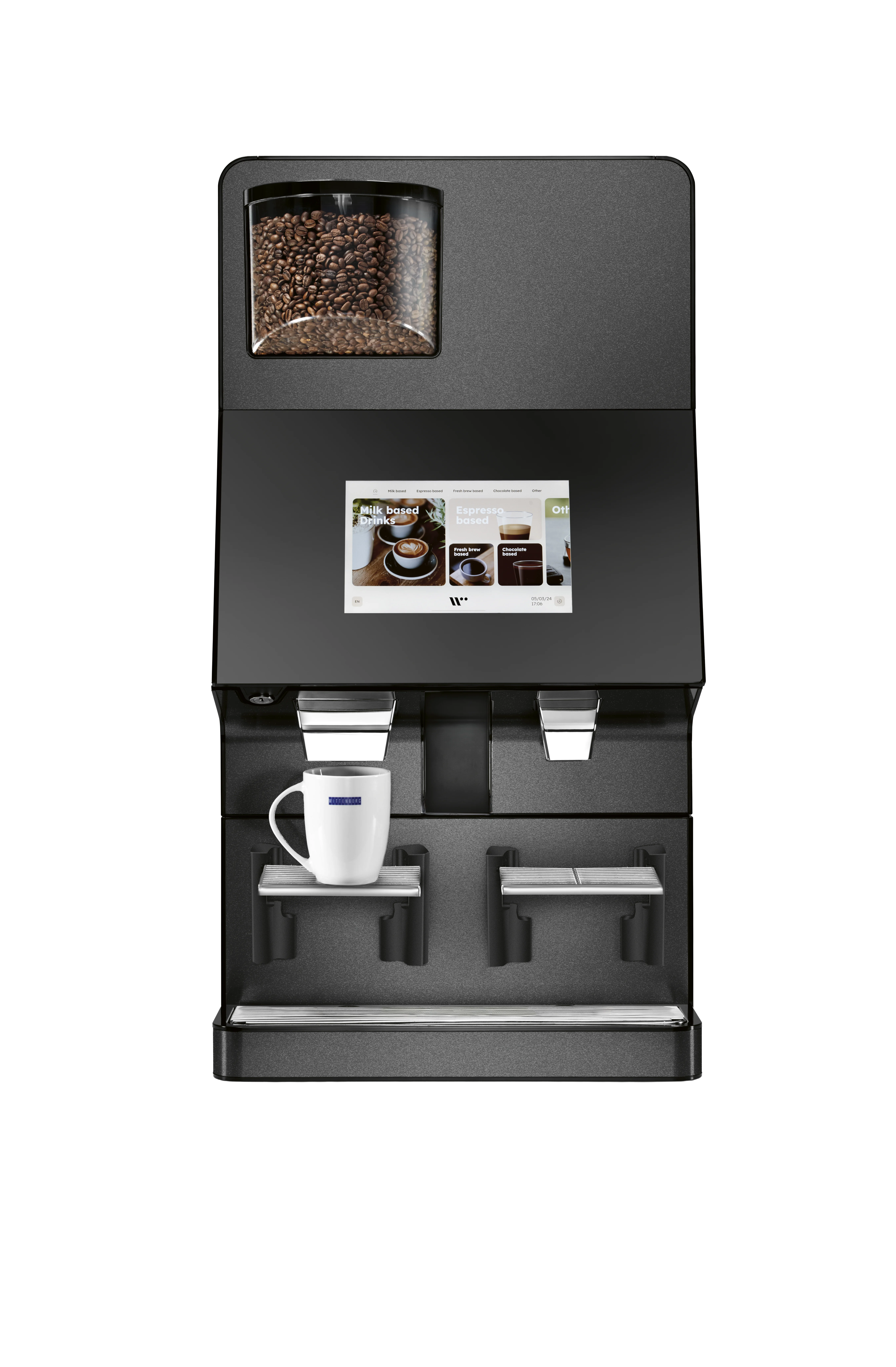 Wittenborg W100 Core er utviklet for å levere en stabil, kvalitetsrik kaffeopplevelse i alle typer miljøer. Maskinen kombinerer pålitelig teknologi, intuitiv betjening og høy koppkvalitet – perfekt for bedrifter som ønsker en problemfri og profesjonell kaffeløsning.